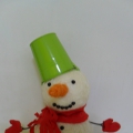 - Используя мастер-класс, полностью создается поделка. Необходимо склеить главные детали снеговика, при этом следует вдавливать места склеивания, это повысит его прочность. Дальше нужно украсить лицо снеговика, каждый своими силами создает подходящий образ. Для носа используется картон, морковь или другой материал.