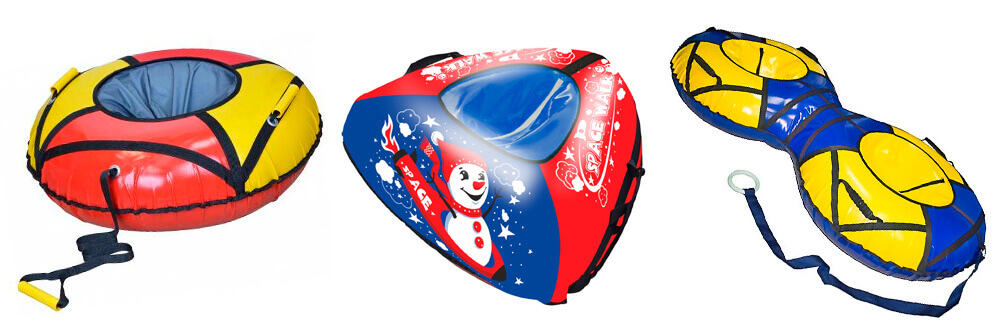 Чаще всего в магазинах встречаются круглые одноместные ватрушки, также есть треугольные и овальные бублики, двухместные «восьмёрки» и трёхместные «матрёшки». Они отличаются друг от друга только формой чехла. Камеры во всех одинаково круглые.