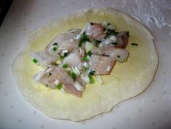 Выкладываем подготовленную рыбную начинку.