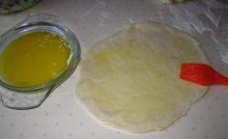 Раскатываем лепешку, смазываем растопленным сливочным маслом.