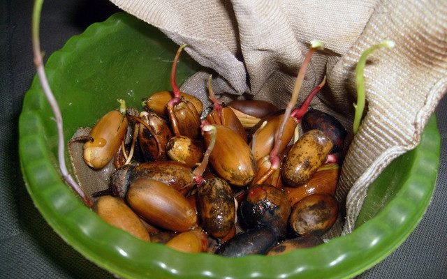 Отобранные желуди хорошо просушивают, а затем вместе со мхом или стружкой помещают в плотно закрывающийся пакет. Его убирают в холодильник на 45 и более дней, пока желудь не начнет прорастать.